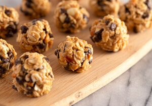 2. Replace donut holes with protein balls. Mix rolled oats, nut butter, and honey together and then shape them into circles. These no bake treats are both delicious and healthy!